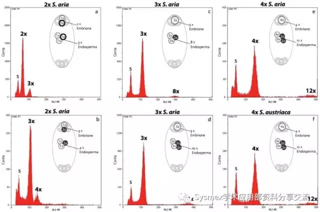 孤雌生殖是一種不經過受精但產生種子生殖方式。其繁殖后代與母體是相同的。流式圖中的峰是由于種子的胚胎和胚乳細胞由無特定的孤雌生殖以及孤雌生殖的方式產生。(圖5)