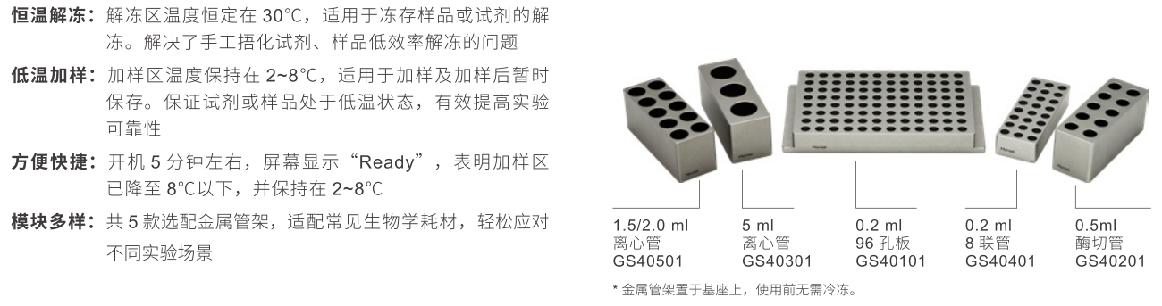 ECT4200電子恒溫加樣臺(tái)適用于生物學(xué)實(shí)驗(yàn)中低溫加樣及試劑、樣本的解凍和臨時(shí)低溫儲(chǔ)存。儀器具有兩個(gè)預(yù)設(shè)溫度。不同的區(qū)域:解凍區(qū)溫度恒定在30℃,用于解凍試劑、樣本;加樣區(qū)溫度保持2~8℃,用于低溫實(shí)驗(yàn)。搭配金屬管架,可適配常見生物學(xué)耗材。LCD液晶屏簡明顯示儀器當(dāng)前狀態(tài)。一鍵開機(jī),操作便捷。