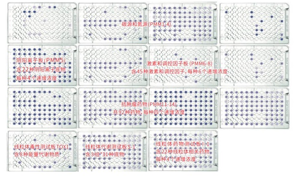 PMM哺乳動物細(xì)胞表型,高通量測定哺乳動物細(xì)胞常見的代謝表型,包括4塊碳源和氮源能量代謝板、1塊陰陽離子板、3塊激素和調(diào)控因子板、4塊抗腫瘤藥物板及3塊線粒板等15塊微孔板,近1500種表型。
