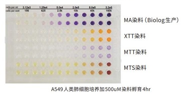 BIOLOG專利開發(fā)的MA/MB/MC染料,與傳統(tǒng)的細(xì)胞染料XTT、MTT和MTS相比,具有背景顏色干擾小、靈敏度更高、線性范圍更寬等特點,是PMM平臺最核心技術(shù)之一。