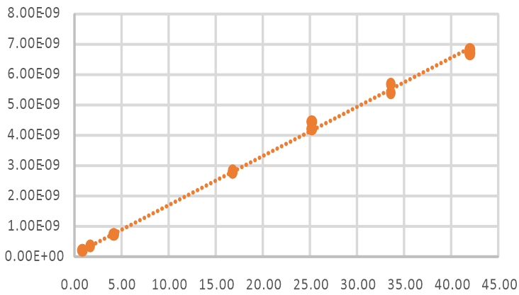 圖3 利用已知CH4濃度和測量出來的信號值進行擬合曲線,進而測量未知水體中CH4濃度