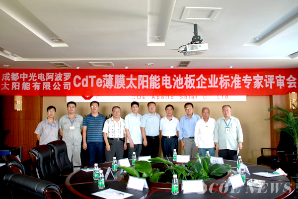 ????? 9月3日,公司隆重召開CdTe薄膜太陽能電池板企業(yè)標(biāo)準(zhǔn)專家評審會。中國電子工業(yè)標(biāo)準(zhǔn)化技術(shù)協(xié)會副秘書長龐春霖、蚌埠玻璃工業(yè)設(shè)計研究院科技管理部部長魏曉俊、四川鑫炬礦業(yè)資源開發(fā)股份有限公司總工程師侯立瑋、四川阿波羅太陽能科技有限責(zé)任公司總工程師守炳生、副總工程師邢文魁、成都中光電阿波羅太陽能有限公司常務(wù)副總謝義成、品質(zhì)保障部部長王定椿、技術(shù)研發(fā)部副部長劉映天等參加了會議。由龐春霖任專家評審會組長。