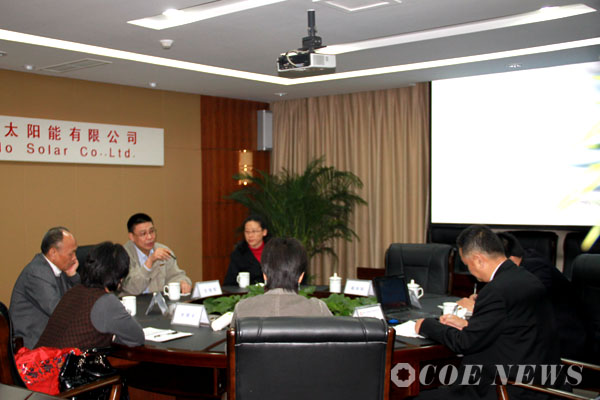 ????? 在中建集團、公司領(lǐng)導(dǎo)的陪同下,中咨公司左振軍主任一行參觀了公司展廳、5MW碲化鎘薄膜太陽能電池中試生產(chǎn)線及太陽能基站。在座談會上,公司總經(jīng)理侯仁義對左振軍主任一行的到來表示歡迎,并詳細(xì)介紹了公司擁有從資源優(yōu)勢、高純新材料到光伏建筑一體化的整個產(chǎn)業(yè)鏈。公司在新能源、新材料和新