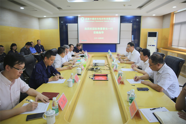 ??? 6月23日下午,凱盛科技集團(tuán)公司總經(jīng)理,中國建材國際工程集團(tuán)有限公司董事長、總裁,蚌埠玻璃工業(yè)設(shè)計(jì)研究院長彭壽視察了成都中建材光電材料有限公司年產(chǎn)80兆瓦碲化鎘薄膜發(fā)電玻璃生產(chǎn)線并召開專題工作會(huì)。公司總經(jīng)理潘錦功,常務(wù)副總經(jīng)理殷新建,德國CTF公司CEO Dr.Harr等陪同。