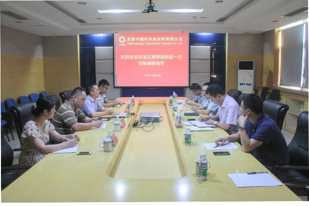 ??? 7月14日上午,雙流區(qū)委常委韓超一行到成都中建材調(diào)研指導(dǎo),重點了解公司薄膜太陽能電池產(chǎn)業(yè)技術(shù)發(fā)展、產(chǎn)業(yè)化進(jìn)程與市場應(yīng)用前景,受到了公司總經(jīng)理潘錦功的熱情接待。